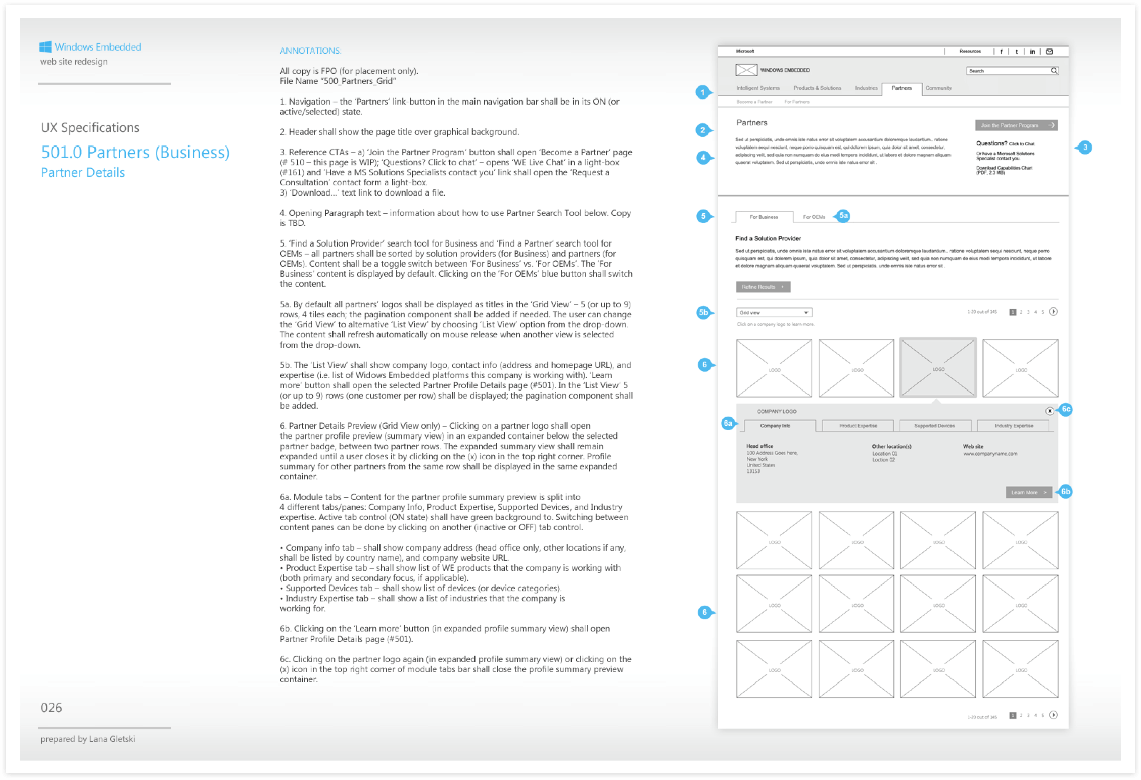 - UX specifications.