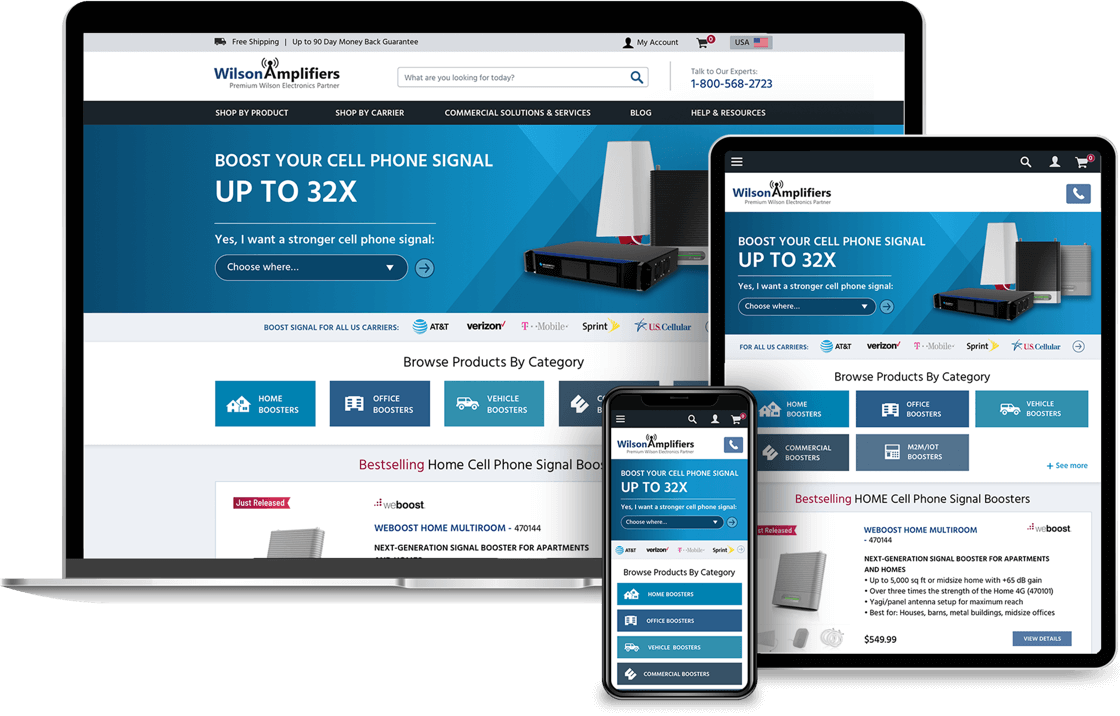 WilsonAmplifiers.com is an e-commerce website and an authorized reseller of Wilson Electronics cell phone signal booster systems. The company offers a complete line of products that amplify the weak signal and improve cellular reception in commercial buildings, homes, and vehicles. The company is based in Houston, Texas.