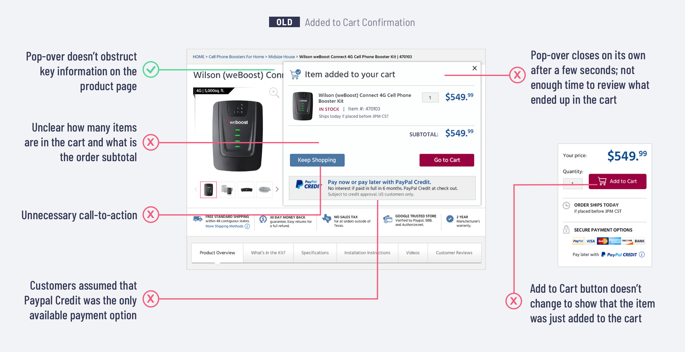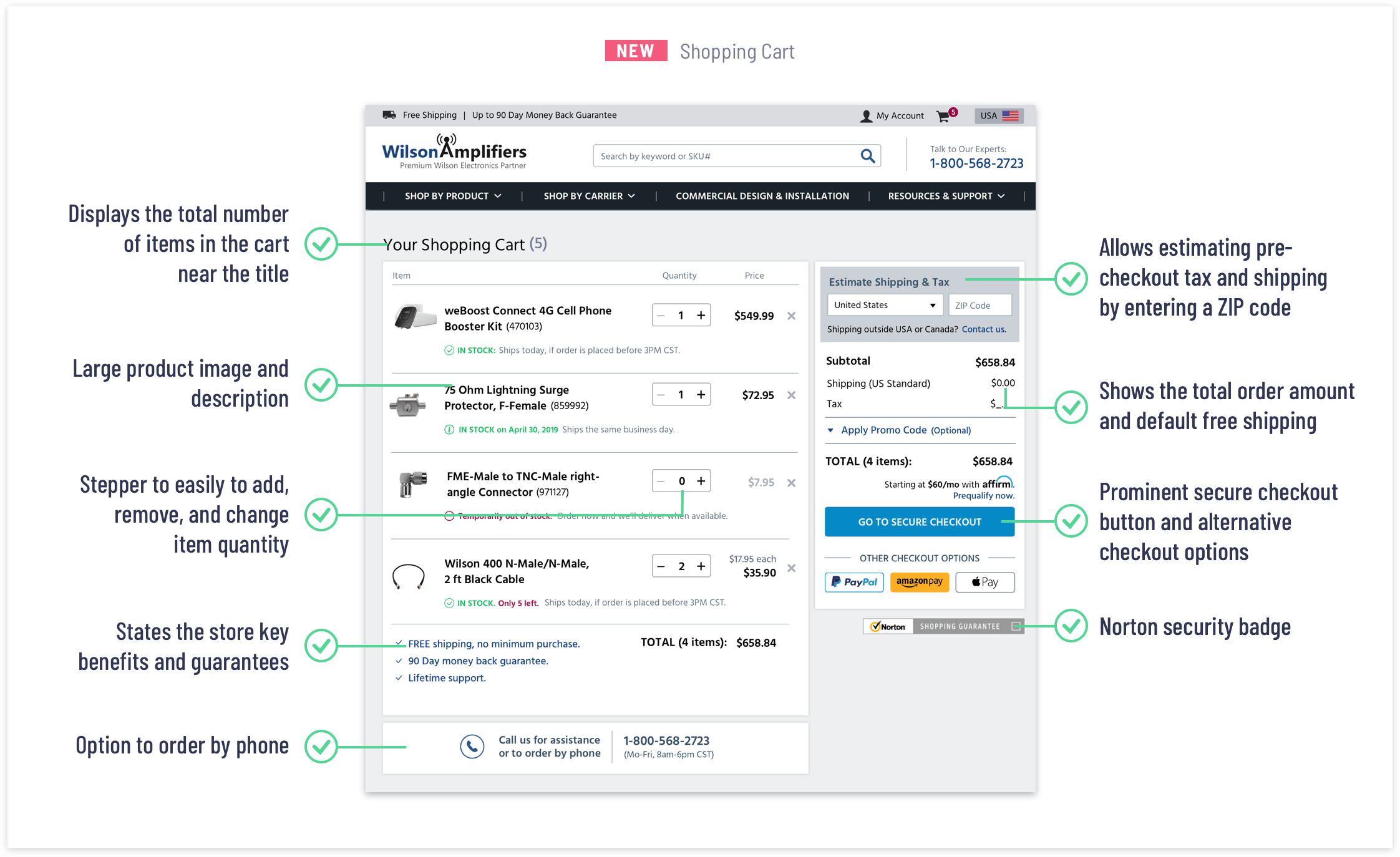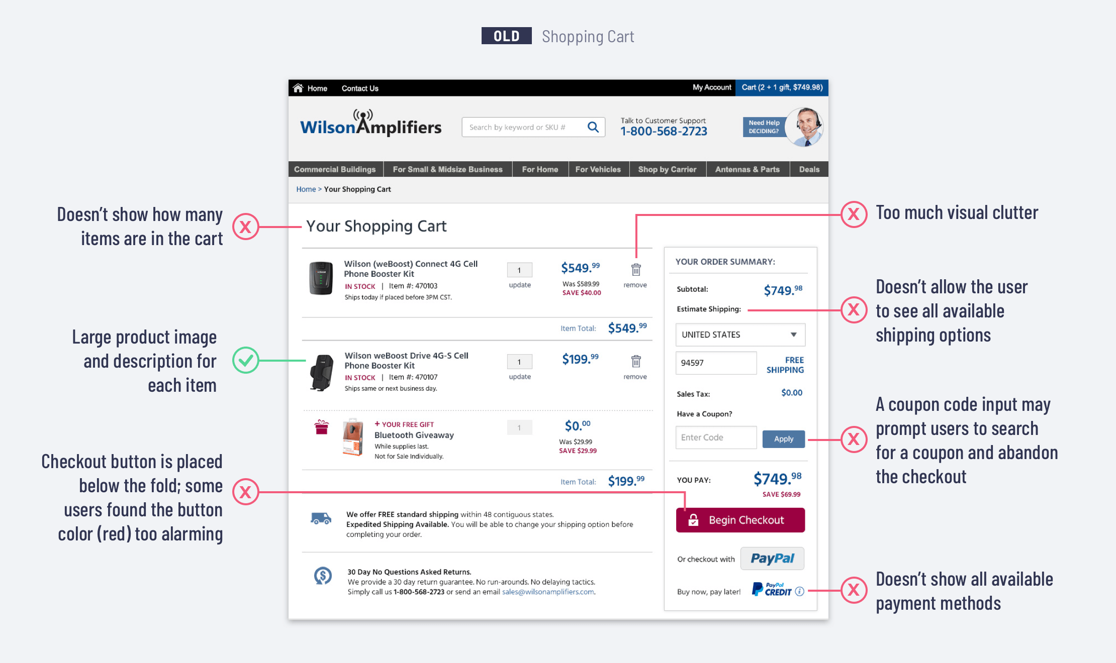The optimization of the shopping cart and checkout experience was a part of the larger project - the entire WilsonAmplifiers.com site redesign.