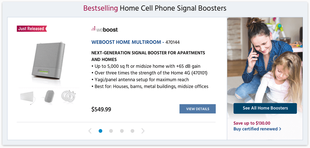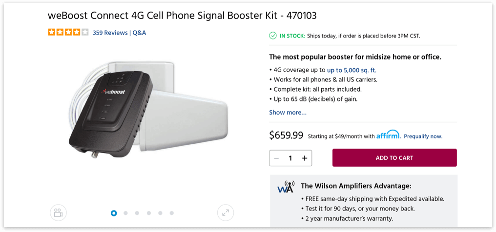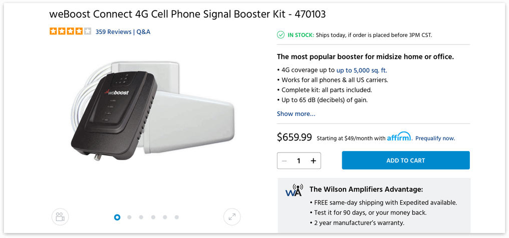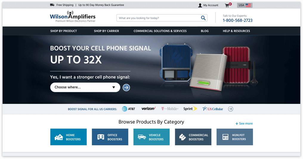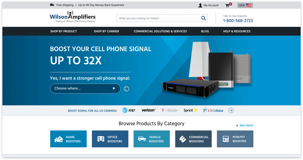 WilsonAmplifiers.com is an e-commerce website and an authorized reseller of Wilson Electronics cell phone signal booster systems. The company offers a complete line of products that amplify the weak signal and improve cellular reception in commercial buildings, homes, and vehicles. The company is based in Houston, Texas.