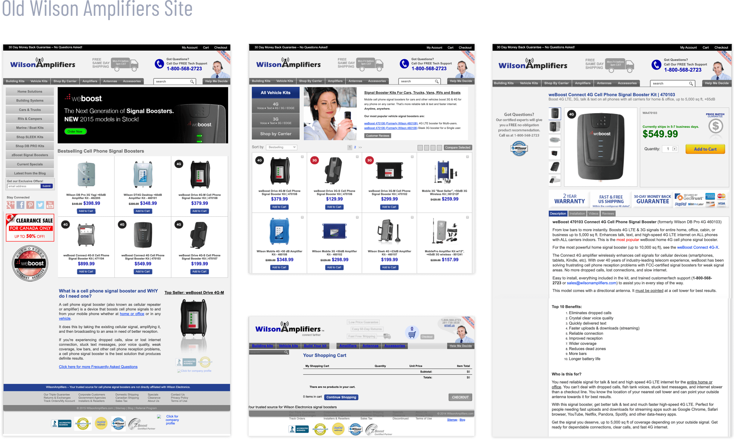 I conducted a heuristic evaluation of the old Wilson Amplifiers site to identify critical problem areas. I looked at Google Analytics Pageview and Traffic Analysis to see where the visitors were coming from, their entry and exit points, how much time people spent on key pages, conversion rates, and page bounce rates.